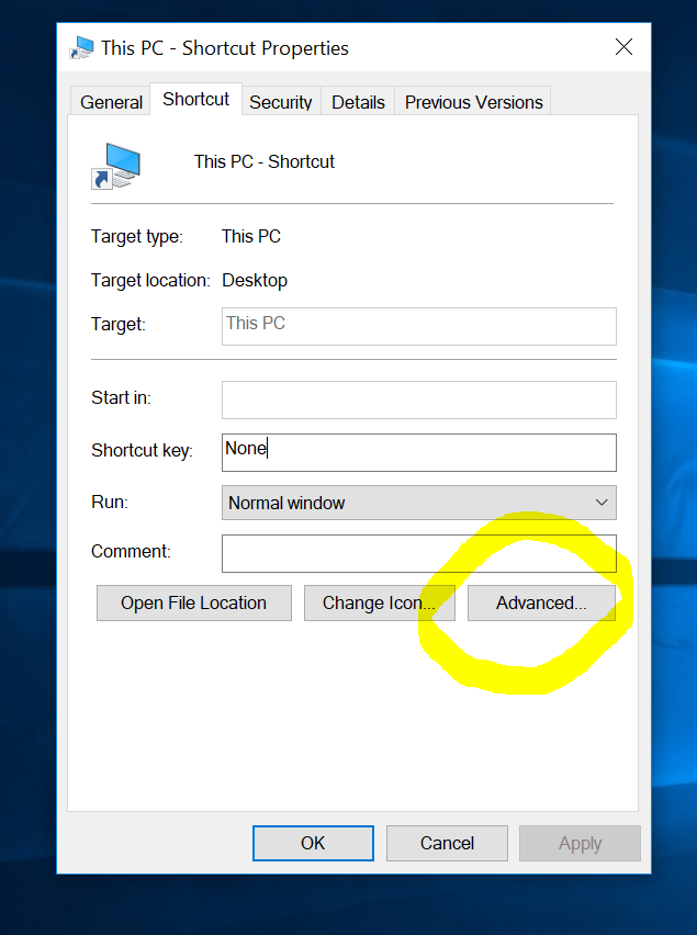 - Choose Properties from the context menu.
