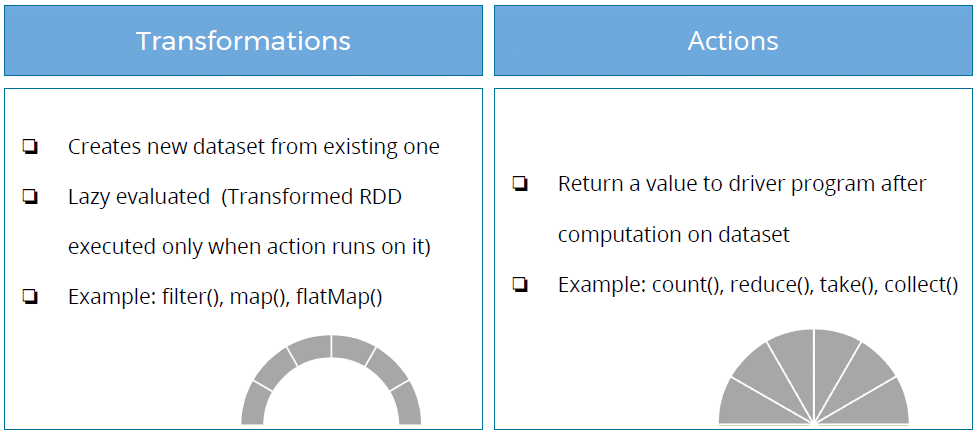RDDs support two types of operations: Transformations and Actions. Transformation operations create new RDD from an existing RDD without modifying them (because RDDs are immutable).